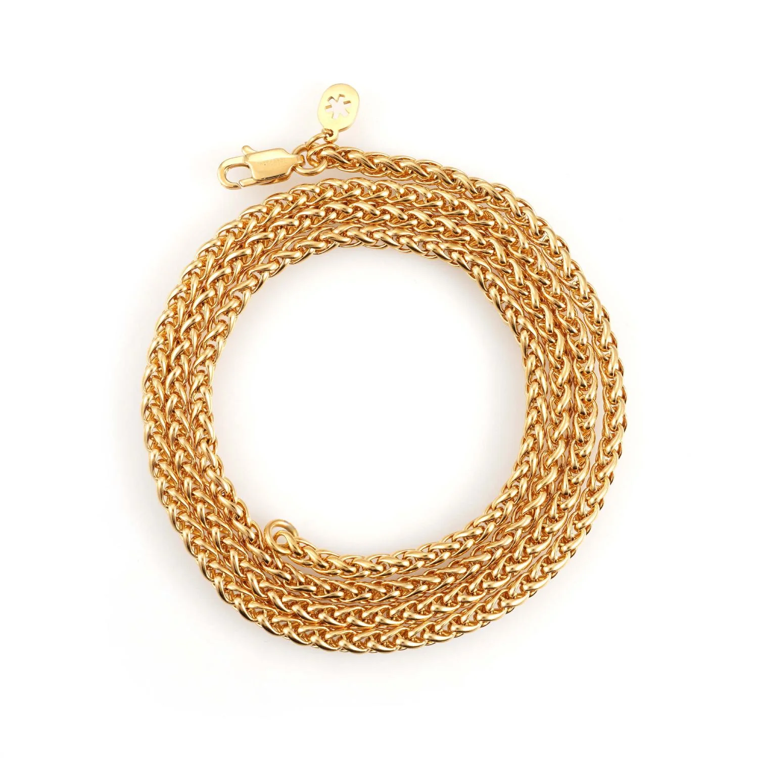 IceCartel™ exclusive 3MM Gold Wheat Link Chain is now available, made of Stainless Steel and plated with 14K Gold. Each link on this wheat link chain measures exactly 3 millimeters in diameter.