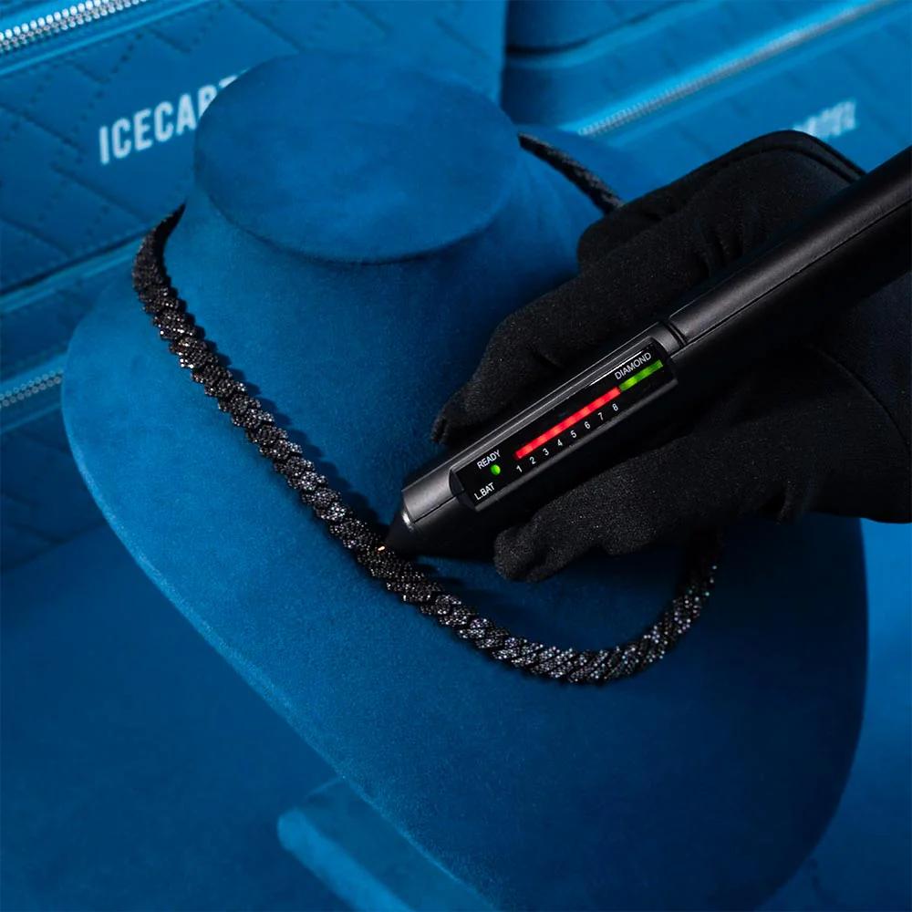 This moissanite cuban link chain is iced out with round cut, black VVS moissanite flawless diamonds, placed in a prong diamond setting. All of the diamonds on this moissanite cuban necklace are guaranteed to pass the diamond tester.